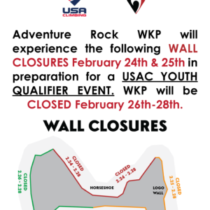 Thursday (10/9): All bouldering CLOSED. Spray wall, training boards, yoga, & fitness OPEN.