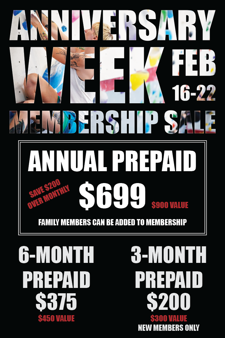 *The 3-Gym Pass gives you access to all 3 Adventure Rock locations during Big Wall Weekend for close to the price of a day pass!